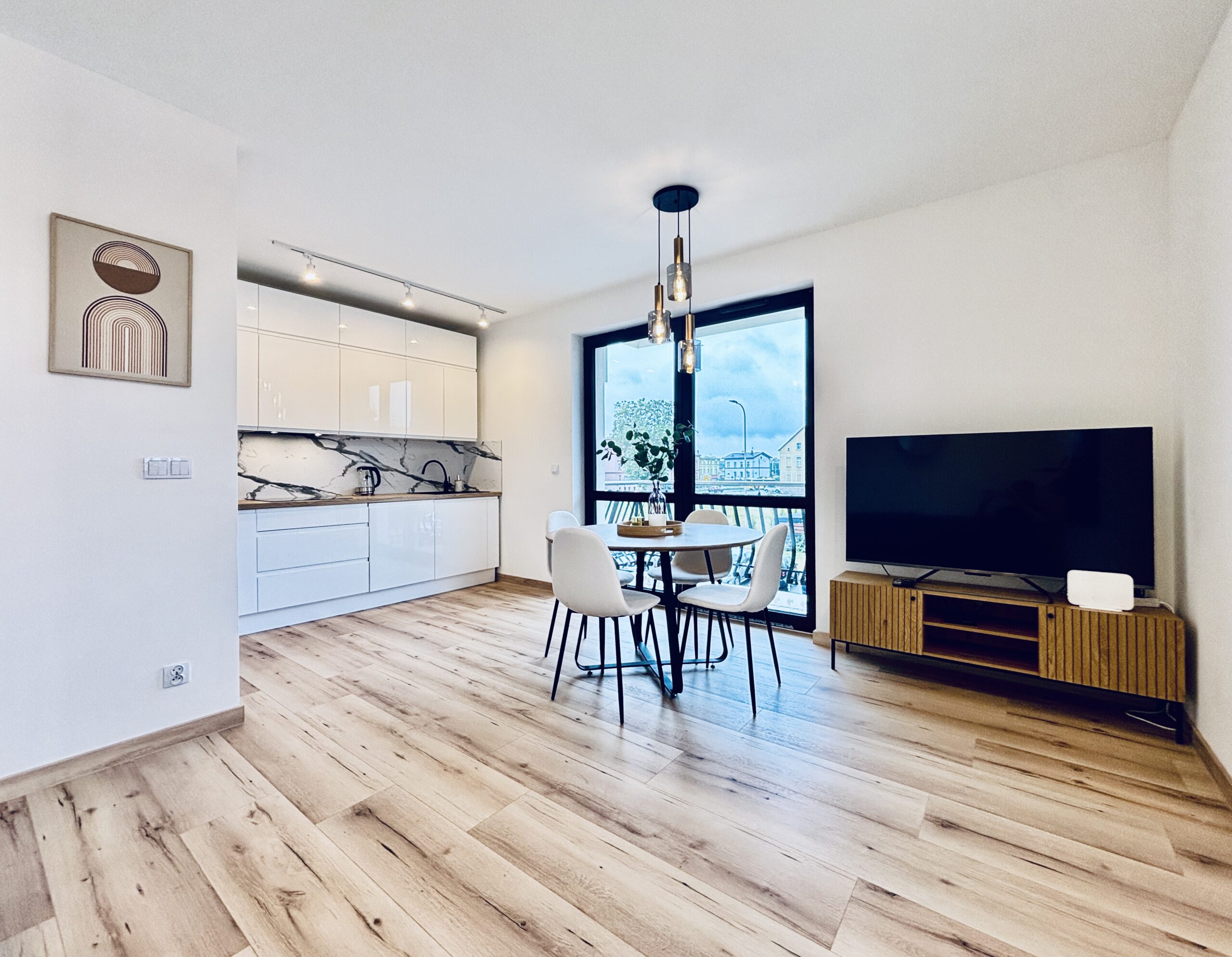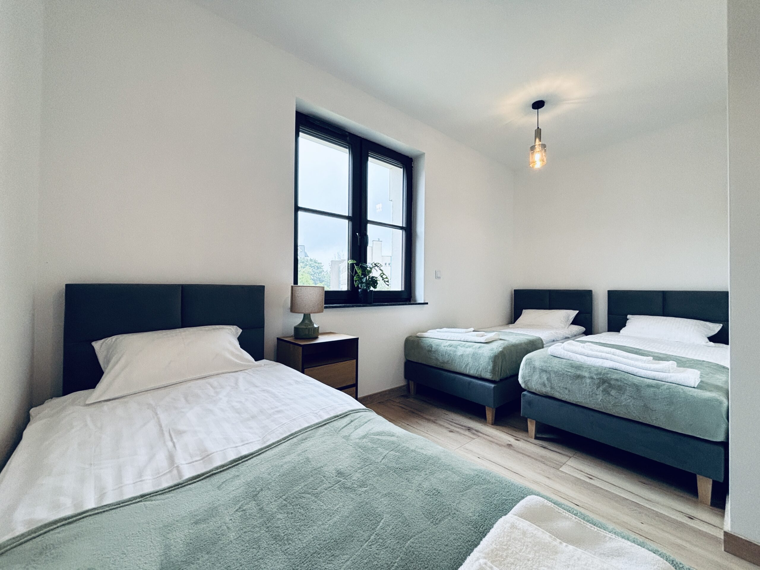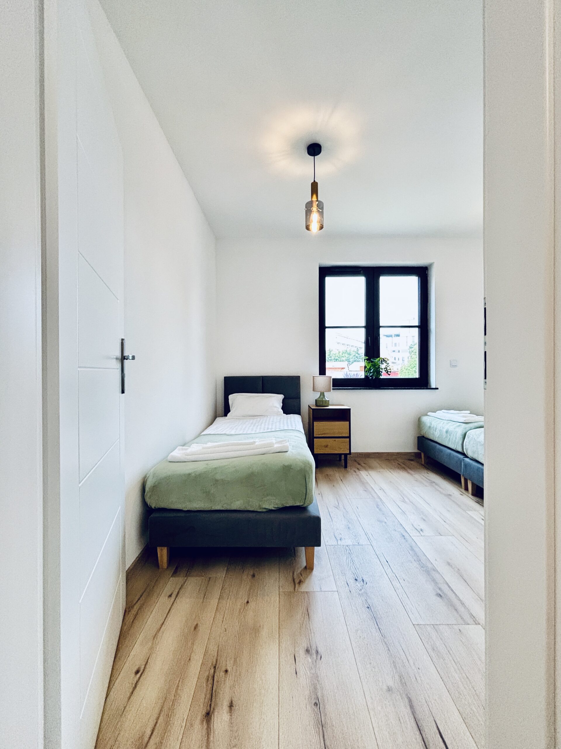 Zapraszamy do naszego przestronnego apartamentu, który dysponuje oddzielną sypialnią z trzema pojedynczymi łóżkami kontynentalnymi oraz rozkładaną sofą w salonie. W pełni wyposażony aneks kuchenny połączony z jadalnią daje wszystko, co potrzebne do przygotowania posiłków i wygodnego spożywania ich na miejscu. Dodatkowy komfort zapewniają takie udogodnienia jak ogrzewanie podłogowe, smart TV z telewizją kablową, szybki internet Wi-Fi oraz pralka.