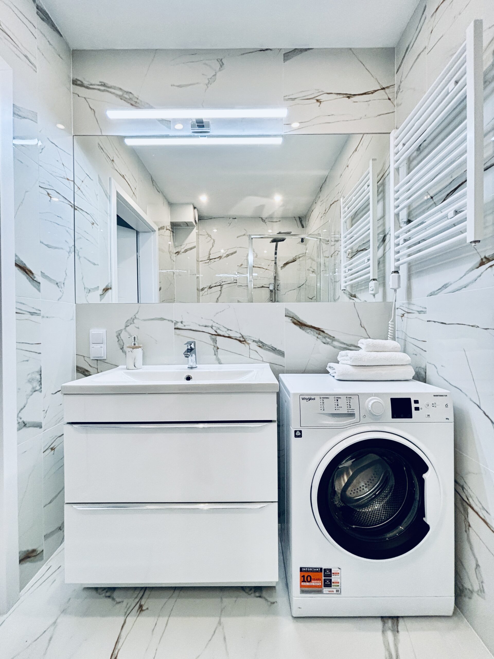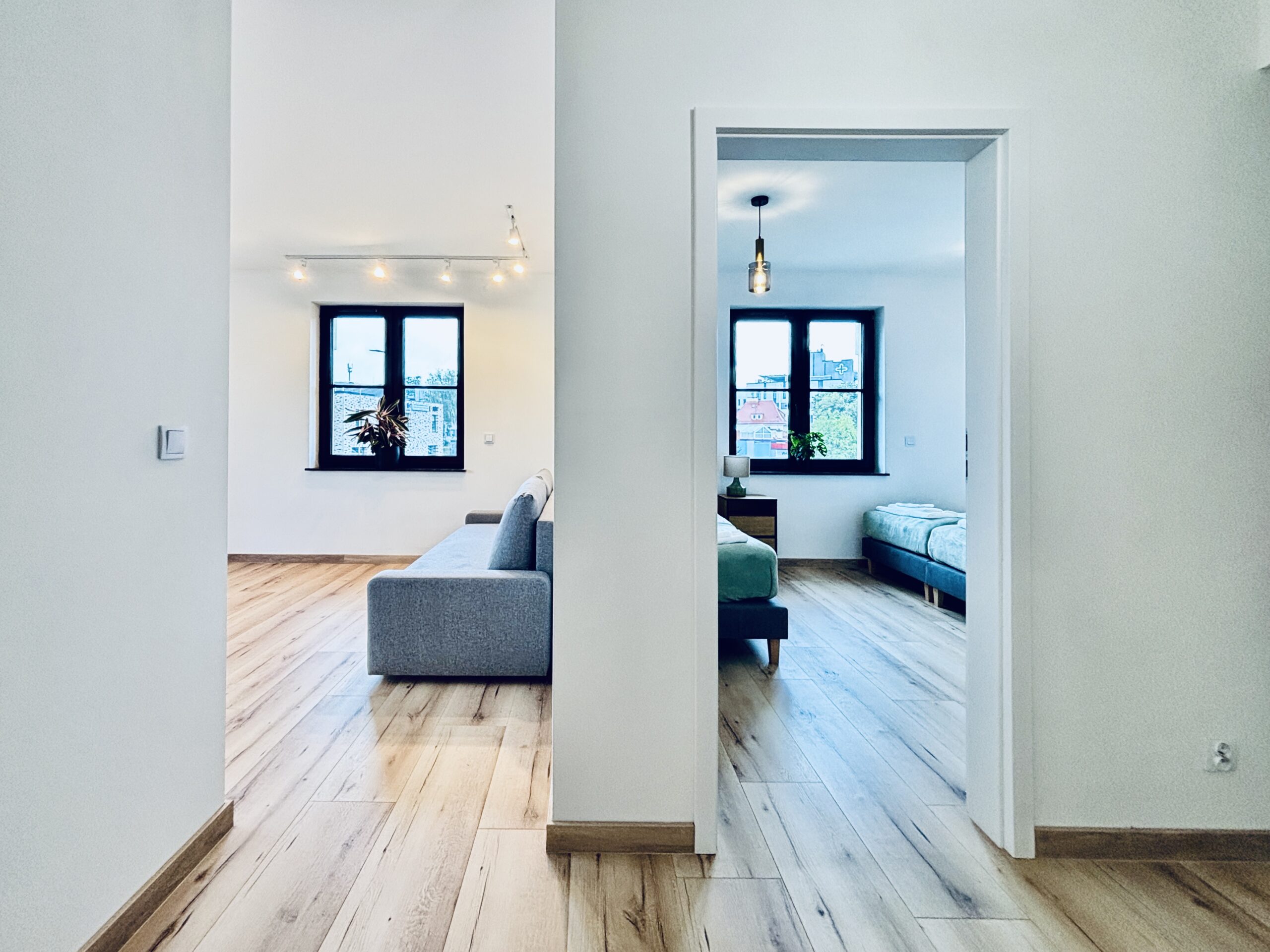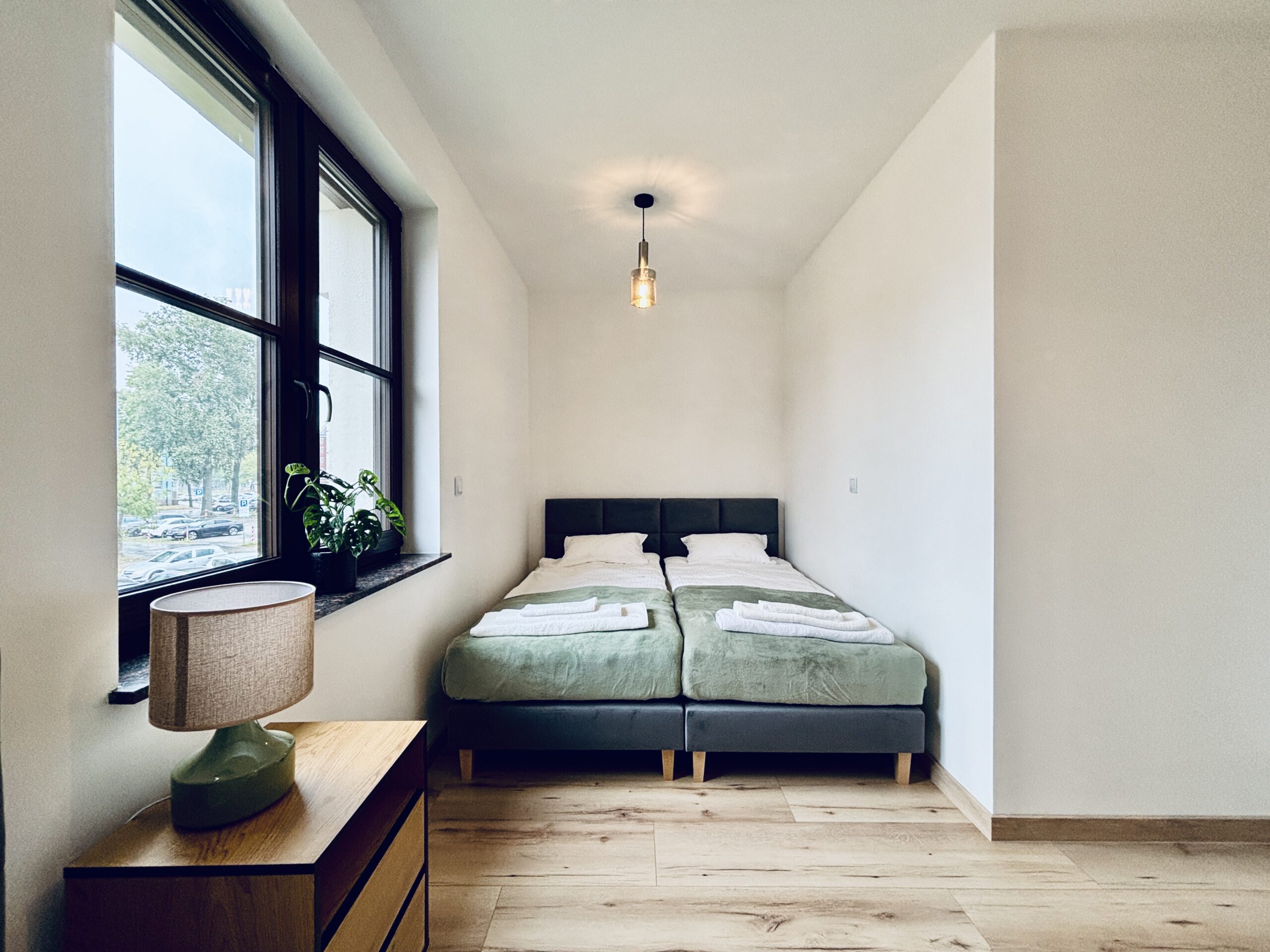 Zapraszamy do naszego przestronnego apartamentu, który dysponuje oddzielną sypialnią z trzema pojedynczymi łóżkami kontynentalnymi oraz rozkładaną sofą w salonie. W pełni wyposażony aneks kuchenny połączony z jadalnią daje wszystko, co potrzebne do przygotowania posiłków i wygodnego spożywania ich na miejscu. Dodatkowy komfort zapewniają takie udogodnienia jak ogrzewanie podłogowe, smart TV z telewizją kablową, szybki internet Wi-Fi oraz pralka.